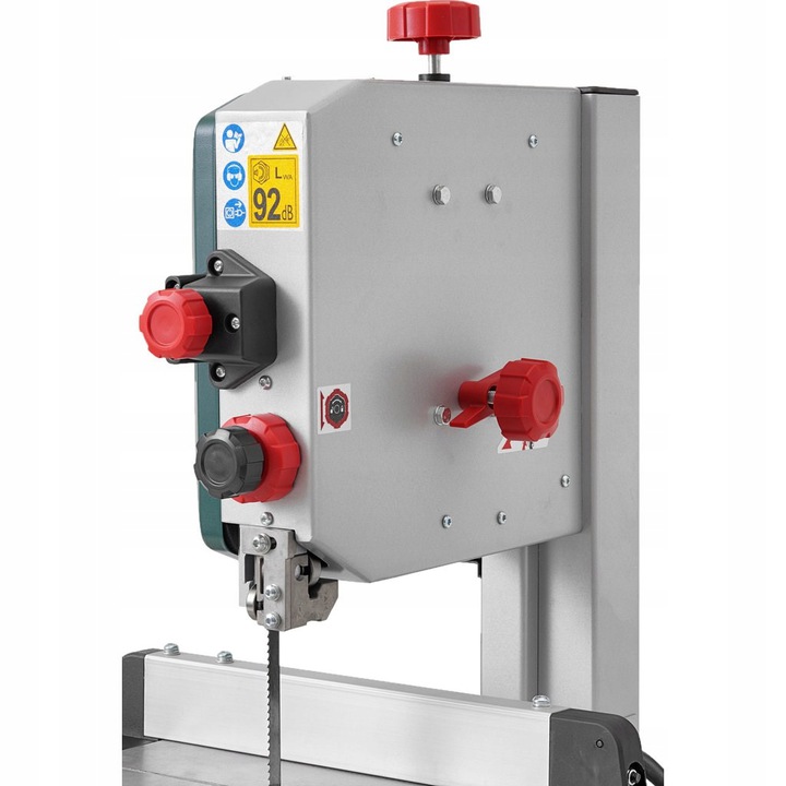 ⏩ Pilarka wyposażona jest w pochylany stół pilarki z żeliwa szarego do wykonywania cięć kątowych. Łatwą wymianę brzeszczotu taśmowego zapewniają otwierane drzwi bez użycia narzędzi.